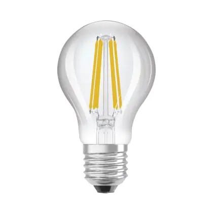 Die Ledvance Classic LED E27 Birne Fadenlampe Klar 5W 1055lm - 830 Warmweiß | Ersatz für 75W ist eine effiziente E27 LED-Lampe mit Retrodesign und der perfekte Ersatz für Ihre konventionellen 75W Lampen mit E27. Zudem strahlt sie Licht in der Farbtemperatur 3000K - Warmweiß aus und punktet durch eine lange Lebensdauer.