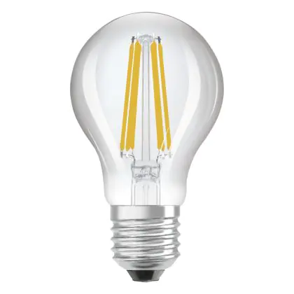 Die Ledvance Classic Superior LED Glühbirne E27 Birne Fadenlampe Klar 5.7W 1055lm - 827 Extra Warmweiß | Dimmbar - Ersatz für 75W ist eine effiziente E27 LED-Lampe mit Retrodesign und der perfekte Ersatz für Ihre konventionellen 75W Lampen mit E27. Zudem strahlt sie Licht in der Farbtemperatur 2700K - Extra Warmweiß aus und punktet durch eine lange Lebensdauer.