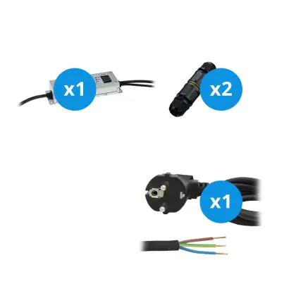 Ein praktisches Extra dieses Modells ist das 2 Meter lange Stromkabel mit Erdung sowie der wasserdichte Verbinder, die im Lieferumfang enthalten sind. Der wasserdichte Verbinder ermöglicht eine sichere, wassergeschützte Verbindung, die besonders im Außenbereich von Vorteil ist und eine einfache Installation ermöglicht.
