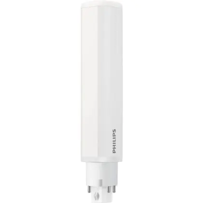 Mit der Philips CorePro PL-C LED 9W 830 | Warmweiß - 4-Stift - Ersetzt 26W wählen Sie eine energiesparende und nachhaltige Lichtlösung. Setzen Sie die Lampe in Downlights ein und erhellen Sie Meetingräume, allgemeine Bereiche oder Verkehrszonen (z.B. Treppenhäuser, Flure, Wege). Aufgrund der rotierbaren Endkappen können Sie das ausgestrahlte Licht besonders zielgerichtet steuern.