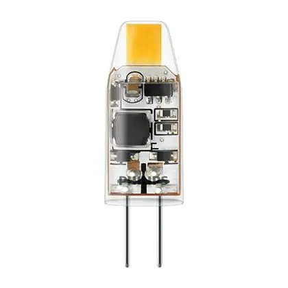 Die Philips LED Capsule CorePro G4 Klar 1W 100lm - 827 Extra Warmweiß | Ersatz Für 10W ist eine effiziente G4 LED-Lampe und der perfekte Ersatz für Ihre konventionelle Halogenlampe mit 10W und einem G4-Sockel. Die Stifte haben einen Abstand von 4 mm. Zudem strahlt das Produkt Licht in der Farbtemperatur 2700K - Extra Warmweiß aus und punktet durch eine lange Lebensdauer.