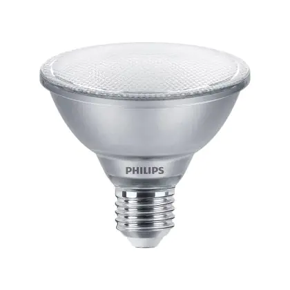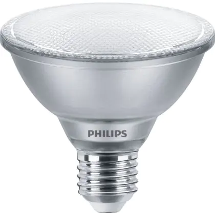 Der Philips Master Value LED Glühbirne Reflektor E27 PAR30 9.5W 820lm 25D - 940 Kaltweiß | Höchste Farbwiedergabe - Dimmbar - Ersatz für 75W ist ein leistungsstarker LED-Strahler mit E27-Sockel. Er kommt mit einer hohen Lebensdauer von 25000 Stunden daher und spart Ihnen somit nicht nur Energie-, sondern auch Austausch- und Wartungskosten. Im Preis ist zudem eine All-In-Garantie von 5 Jahre enthalten.